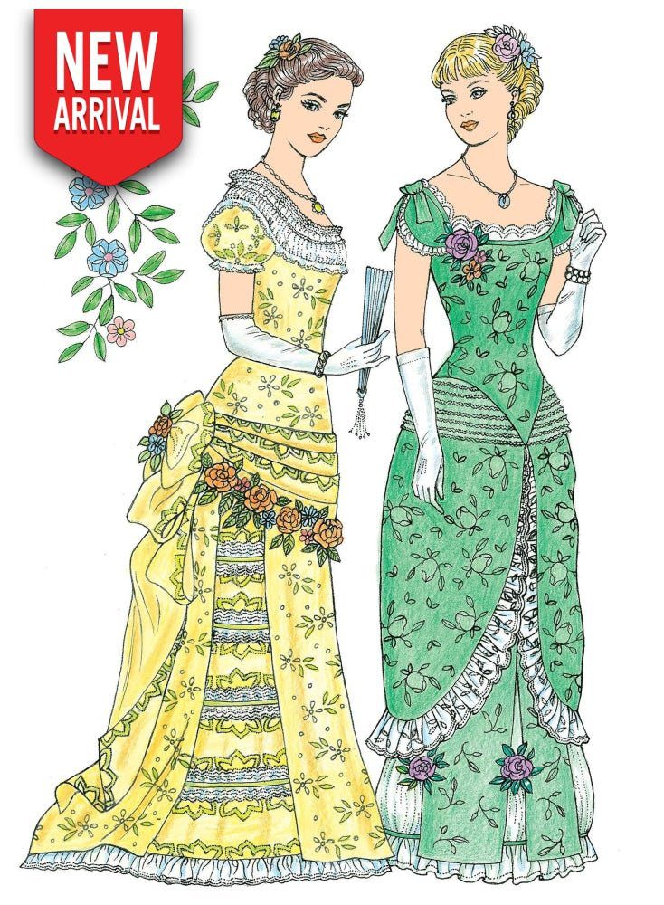 Transport yourself the 19th century, where ladies wore elegant gowns to parties and balls. Inspired by the elegant dresses showcased in Godey’s Lady’s Book, Ladies Home Journal, Harper’s Bazar and other Victorian era magazines. Lace-edged necklines, ruffled bodices, full skirts, extravagant bustles, and more period styles will inspire fashionistas and adult colorists alike.